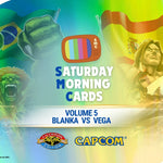 Animalistic fury meets lethal ninjitsu as two of Street Fighter’s greatest characters, Blanka and Vega, do battle in Saturday Morning Cards.